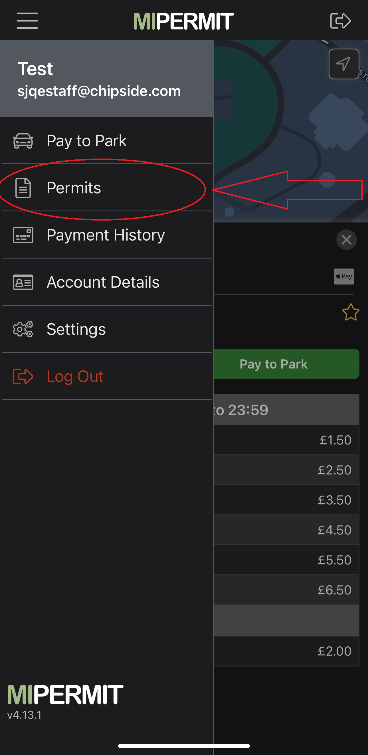 When logged into your account, you will need to go to ‘Permits’ as shown below.
