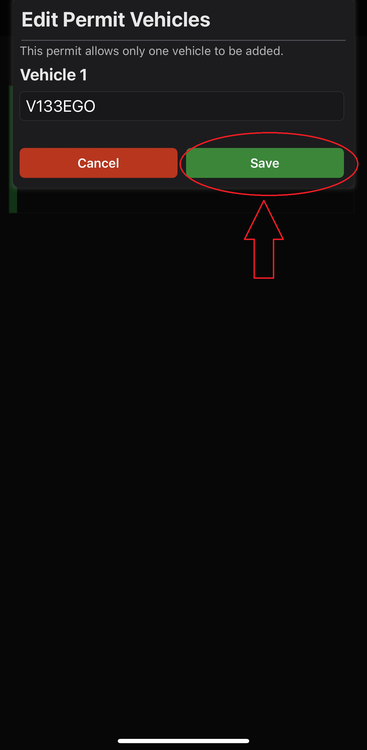 Once saved, you will see the vehicle registration updated immediately on the permit as shown below.