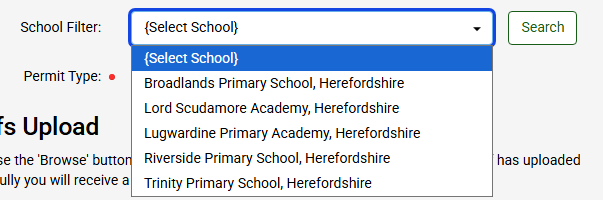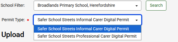 You will need to use the School Filter to select the school you need to apply for, followed by the permit type (Informal or Professional)