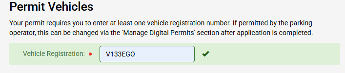 You will then need to input a Vehicle Registration