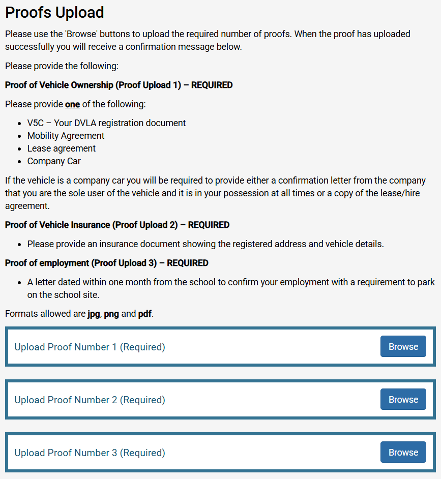 - A letter dated within one month from the school to confirm your employment with a requirement to park on the school site.