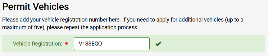 You will then need to input a Vehicle Registration