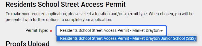 To obtain School Streets Zone Permit, select Buy Digital Permits and Bookings and select the relevant School Street Zone Permits option from MiPermit - wwww.mipermit.com/shropshire. You can select the relevant permit for your needs by clicking on the Permit Type box and selecting the relevant school. You would also require the Unique School ID reference which can be found at www.next.shropshire.gov.uk/parking/season-tickets-waivers-and-permits/school-streets-permit-scheme.