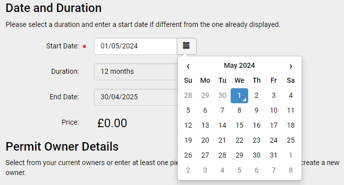 Pick the date you want your virtual permit to start from. This can be a maximum of 30 days in advance.