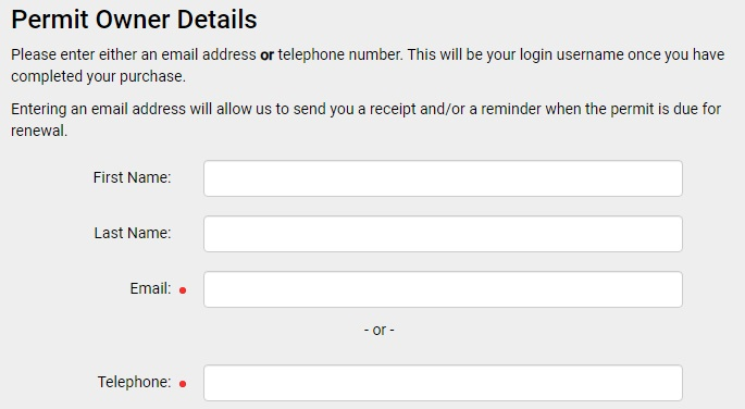 Select you as the logged in account holder to be the virtual permit holder, as the account holder you are responsible for managing all permits registered to your account, or if this not available, enter your name and contact information: