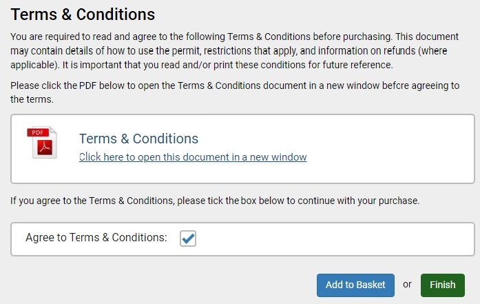 Click the terms and conditions to open them in a new window and check the box to agree.