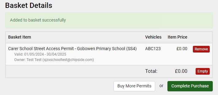 Please be aware that application does not allow you access through a restricted school street zone until your application has been processed and you have received email confirmation that it has been accepted and issued. This is a digital permit and you will not receive one in the post.